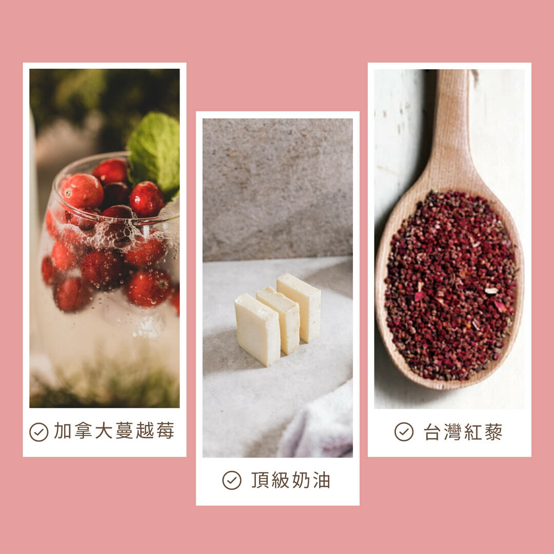 成分:麵粉、糖、棕櫚油、麥芽(樹薯澱粉、水)、無水奶油、蔓越莓(蔓越莓、糖、葵花籽油)、玉米澱粉、奶粉、蛋白霜(葡萄糖、蔗糖、蛋白粉、麥芽糊精、鹽、香料)、燕麥、紅藜麥、鹽