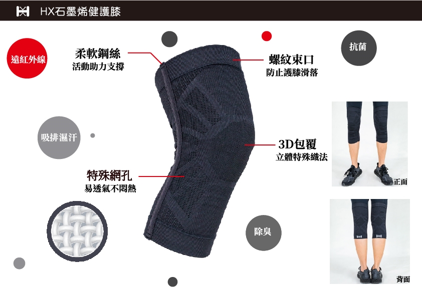 「石墨烯」黑科技材質和皮膚接觸後會產生遠紅外線,幫助促進循環代謝;穿著它,就像幫身體作SPA,可以達到有氧運動的效果~~
