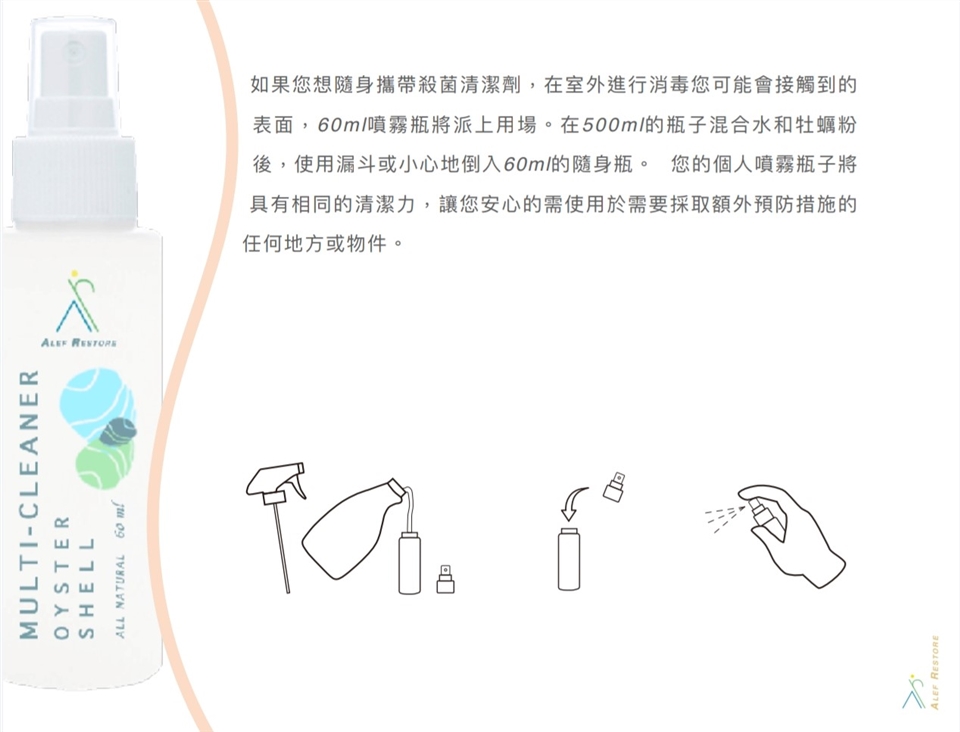 * 室內清潔組: 500ml 噴瓶 *1 ,2包天然除菌粉。